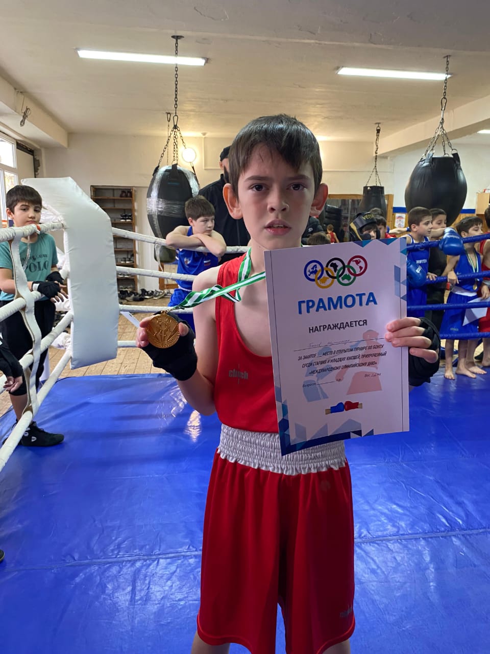 08.12.2024Наш ученик, обучающийся 4 В класса, Гехаев Мухьаммад занял 1 место🥇 в открытом районном турнире по боксу среди старших и младших юношей, приуроченный "Международному Олимпийскому Дню", который прошёл 08.12.2024 года в г.Грозном.👏Дала т1аьхье беркате йойла! Дала кхин д1а а кхиамашкахь сов воккхийла