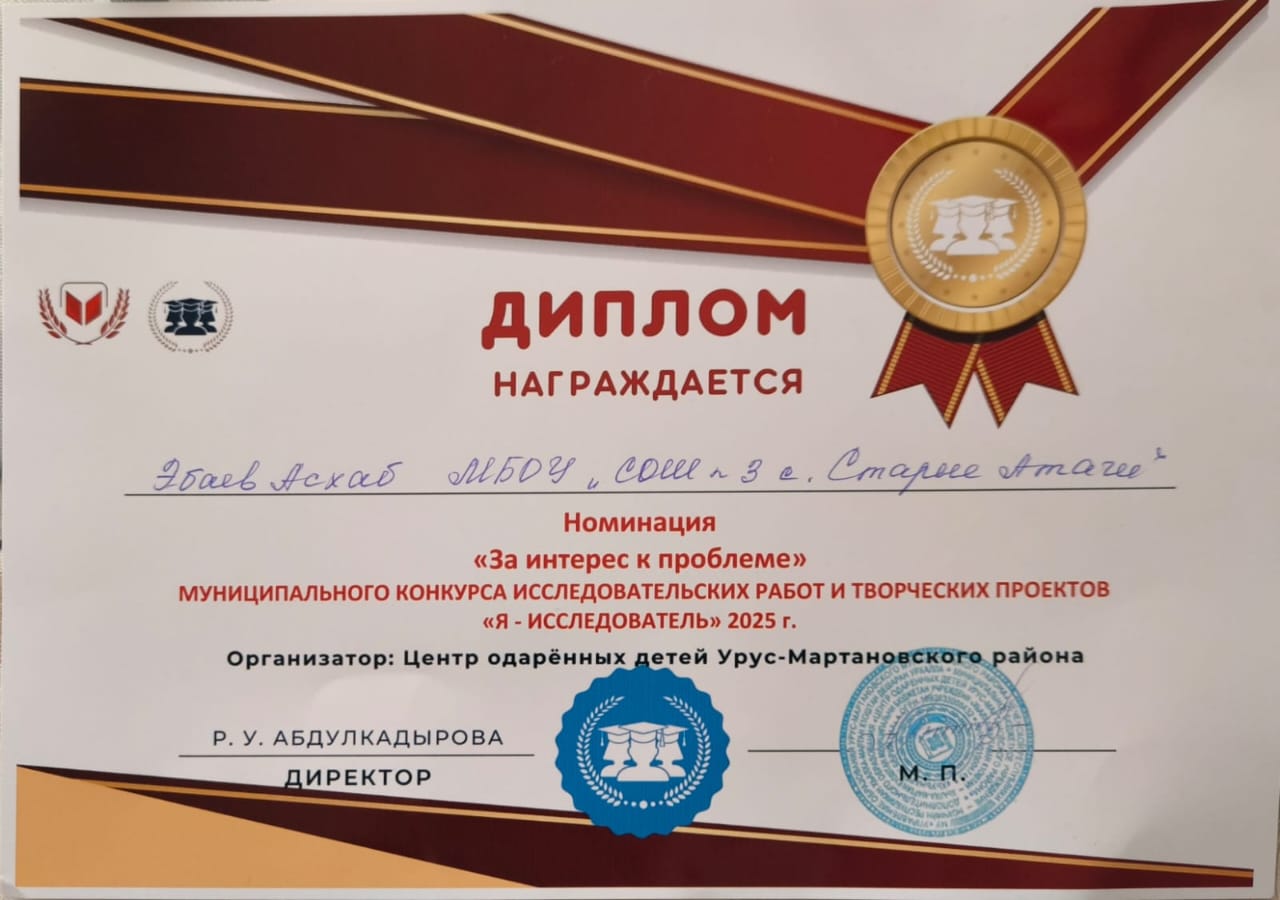 Участник от нашей школы, ученик 4 В класса Эбаев Асхаб, который прошёл в финальный тур, был награждён дипломом в номинации "За интерес к проблеме", с чем и поздравляем его!Конкурс стал замечательной платформой для проявления креативности и научного мышления среди младших школьников.