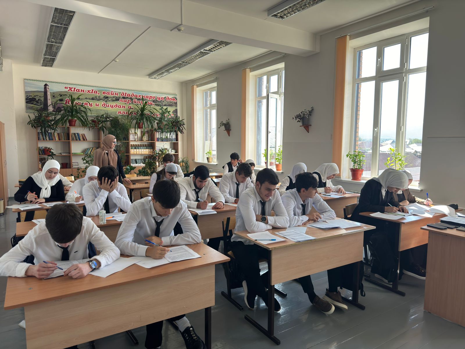 25.09.2025г. ученики 11-х классов МБОУ "СОШ №3 им. М.Пахаева с. Старые Атаги" писали диагностическую работу по русскому языку. Дал аьтто бойл!